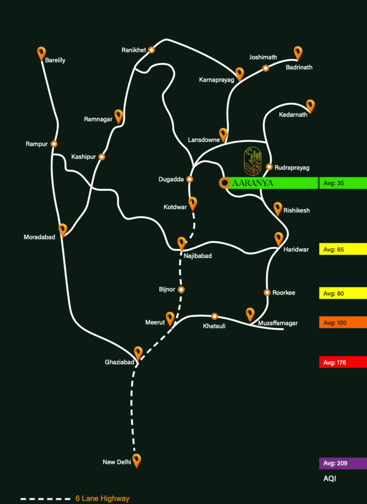 Nestled amidst emerald forests, gurgling streams, and snow-capped peaks, Aaranya Villas offer a lifestyle where every day begins with birdsong and fresh mountain air